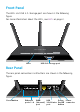 Front Panel The LEDs and USB 3.0-Storage port are shown in the following figure. For more information about the LEDs, see LEDs on page 2. LEDs USB 3.0-Storage port Rear Panel The rear panel connections and buttons are shown in the following figure. Reset button Ethernet ports 1–4 WAN USB Power Power (Internet) 2.