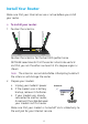 5. Connect a device. Ethernet cable Internet Cable or DSL Router Ethernet cable Modem Power adapter Computer You can use an Ethernet cable to connect a computer to the router or you can use WiFi to connect a computer or WiFi device to the router: • For a wired connection, use an Ethernet cable (not included) to connect your computer to an Ethernet port on your router. • To connect your computer or WiFi device to the router with WiFi, use the WiFi settings on the product label.