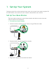 1. Set Up Your System Setting up your Arlo system involves these steps: set up your base station, register for an Arlo account, set up and sync your cameras, and position your cameras. Set Up Your Base Station The base station connects to your home network and allows you to view your camera streams from anywhere. ¾¾ To install your base station: 1. Connect the base station to your router using an Ethernet cable. 2. Connect the AC adapter to the base station. 3.