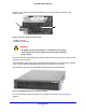 NETGEAR ReadyDATA 5200 Each drive bay features a latch that releases the pop-out tray handle, as shown in the following figure. 1 2 Figure 3. Disk tray handle and release latch 1. Disk tray handle 2. Disk tray release latch WARNING: No matter how many hard drives are installed in your system, ensure that all drive trays remain in the drive bays to maintain proper airflow. For more information about adding and replacing disk drives, see Add a Disk on page 23 and Replace a Disk on page 27.