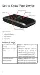 Get to Know Your Device Navigation key WPS button Power key LCD screen micro USB port Also in the box: • Lithium ion battery • Wall charger • USB cable Buttons & keys 1 Lock / unlock the mobile hotspot Press and hold the Navigation key for 3 seconds. Mute / unmute the audio alerts • Press and hold WPS button and Navigation key for 3 seconds, or • Press the Navigation key to go to the Messages / Alerts LCD screen and follow the prompts.