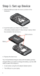 Step 1: Set up Device 1. Slide the SIM card under the cover, as shown in the illustration. 2. Insert the battery as shown in the illustration. (The battery installs easily. If it does not go in easily, check the orientation. Do not force it.) Gold contacts Battery 3. Replace the back cover. Your AirCard Mobile Hotspot comes with the battery partially charged.