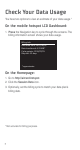 Check Your Data Usage You have two options to view an estimate of your data usage.* On the mobile hotspot LCD Dashboard: 1. Press the Navigation key to cycle through the screens. The billing information screen shows your data usage. Billing Info Data used from: 2012/06/18 Data transferred: 4.23 MB* Cycle restarts: 2012/07/01 ĂLJƐ ůĞŌ͗ ϭϮ ĚĂLJƐ * approximate On the Homepage: 1. Go to http://aircard.hotspot. 2. Click the Session Data icon. 3.