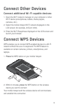 Connect Other Devices Connect additional Wi-Fi capable devices: 1. Open the Wi-Fi network manager on your computer or other Wi-Fi device (smartphones, tablets, media players, cameras, etc.). 2. Select the mobile hotspot Wi-Fi network displayed on the LCD screen (for example, AirCard-1234). 3. Enter the Wi-Fi Passphrase displayed on the LCD screen and launch your browser. Connect WPS Devices WPS enables you to connect WPS-enabled devices to a Wi-Fi network without the use of a keyboard.