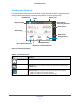 Zain Mobile Hotspot Touchscreen Elements You can use the touchscreen icons and other screen elements to view the hotspot’s status, configure Wi-Fi band settings, view data usage details, and view system alerts Network icon Battery icon Traffic Signal strength Wi-Fi network name and password Home button Data usage Back button Settings button Messages button Wi-Fi status and button Number of connected devices Figure 2. Touchscreen display Table 3. Touchscreen icons Icon Indicates Home button.