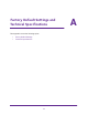 Factory Default Settings and Technical Specifications