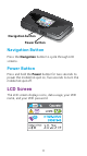 Navigation button Power button Navigation Button Press the Navigation button to cycle through LCD screens. Power Button Press and hold the Power button for two seconds to power the mobile hotspot on, five seconds to turn the mobile hotspot off. LCD Screen The LCD screen displays icons, data usage, your WiFi name, and your WiFi password.