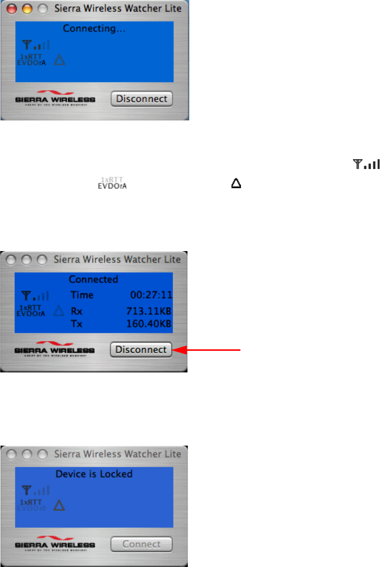 connected and the amount of data received (Rx) and transmitted (Tx) are also