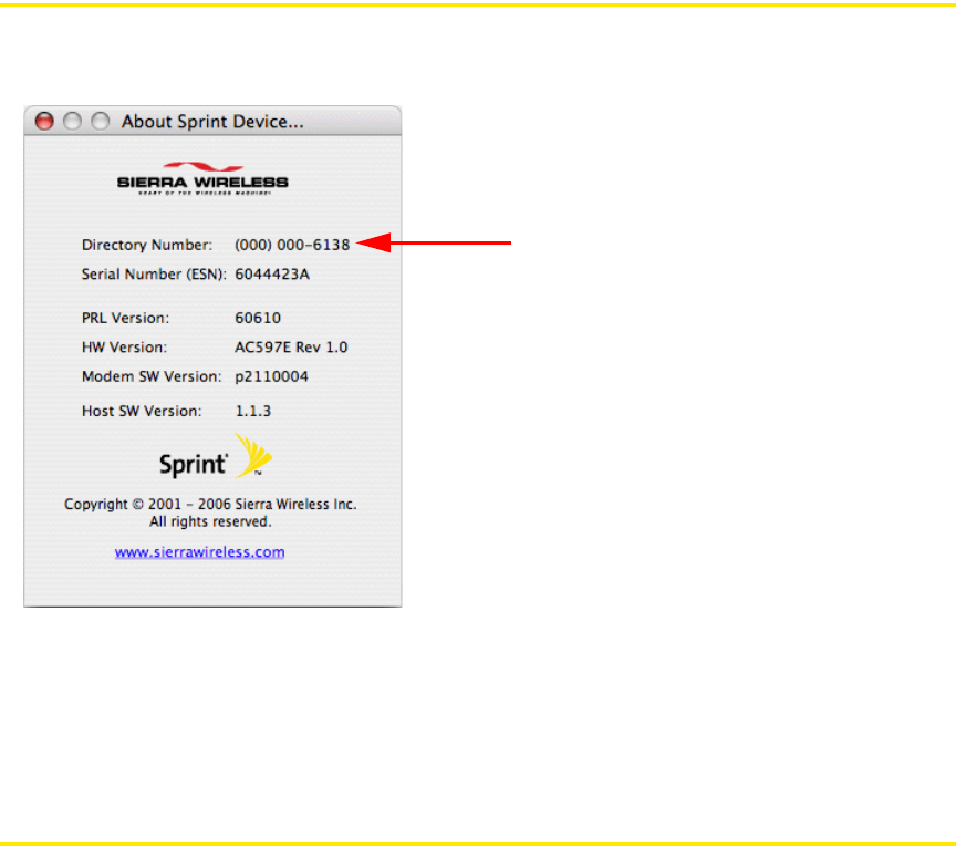 䊳 From the Extras item on the Sierra Wireless Watcher menu, select About Sprint