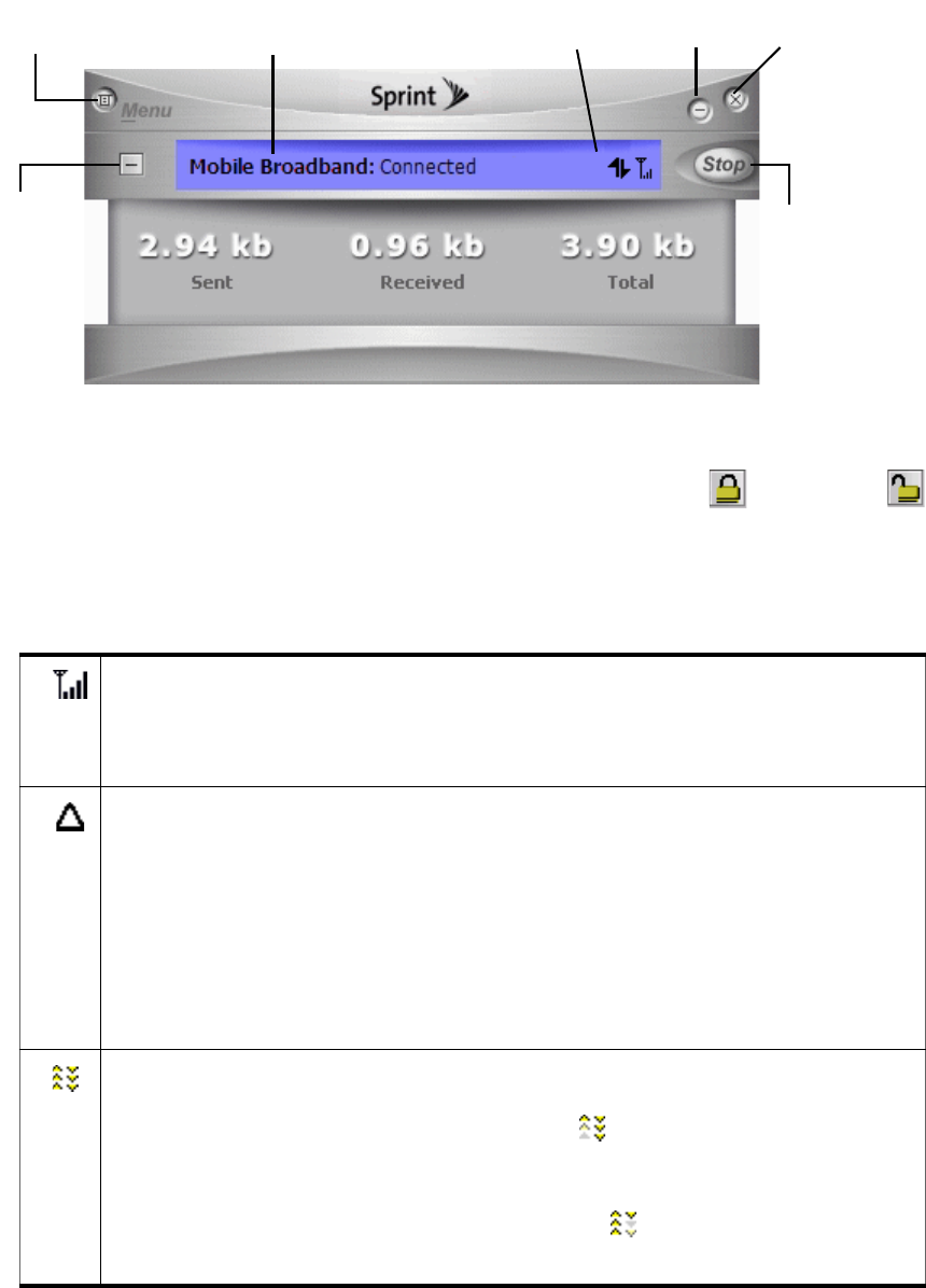 the Sprint Mobile Broadband “Settings” window; page 80).
