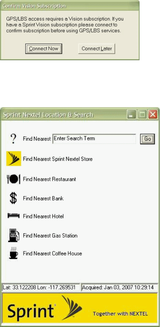 “Sprint Nextel Location & Search” window is displayed. The bottom part of the