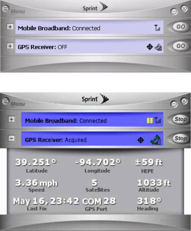 When expanded, the GPS Receiver window displays location information