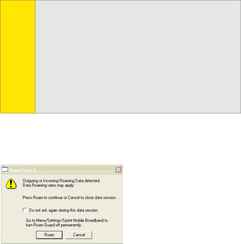 The Roam Guard feature, when enabled, displays a warning message if you are