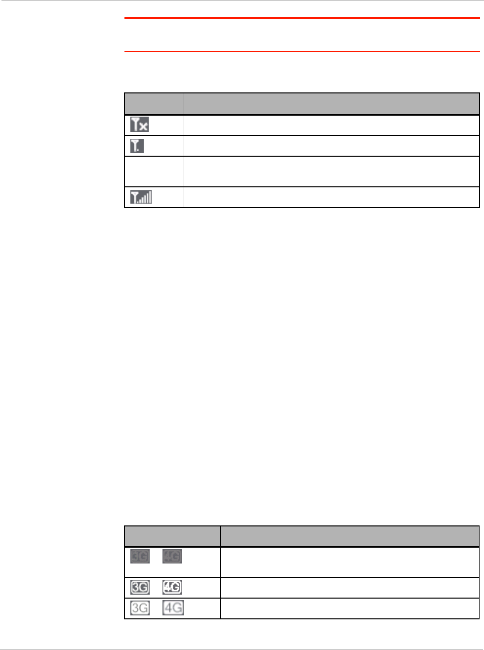 The 3G or 4G icon indicates the service and connection state. Note that only one