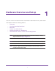 Contents Chapter 1 Hardware Overview and Setup Introduction . . . . . . . . . . . . . . . . . . . . . . . . . . . . . . . . . . . . . . . . . . . . . . . . . . . . . . . . . 9 Front Panel and Right Side Panel . . . . . . . . . . . . . . . . . . . . . . . . . . . . . . . . . . . . . . . 10 Back Panel. . . . . . . . . . . . . . . . . . . . . . . . . . . . . . . . . . . . . . . . . . . . . . . . . . . . . . . . . . 12 Position Your Modem Router. . . . . . . . . . . . . . . . . . . . . . . . . . . . . . . . .