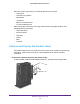 AC1750 WiFi Cable Modem Router Use LEDs to Troubleshoot The following table provides help when you are using the LEDs for troubleshooting. Table 3. Troubleshooting with the LEDs LED Behavior Action All LEDS are off when the modem router is plugged in. • • • All LEDs stay on. • • LAN LED is off for a port with an Ethernet connection. • • • Internet LED is off and the modem • router is connected to the cable television cable.