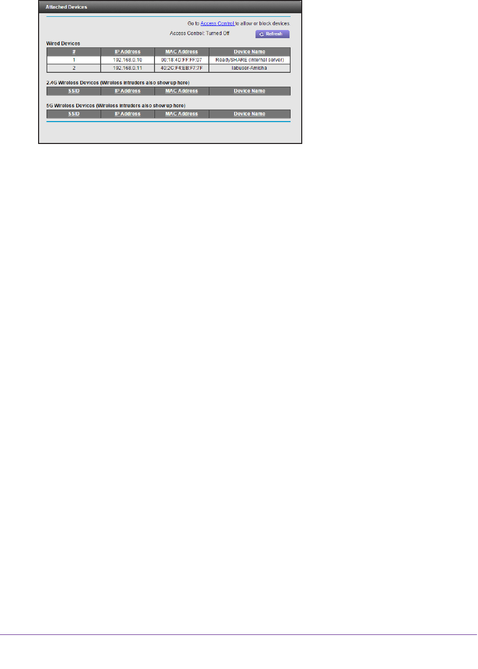 Ethernet cables. The Wireless Devices section lists devices that are connected to the