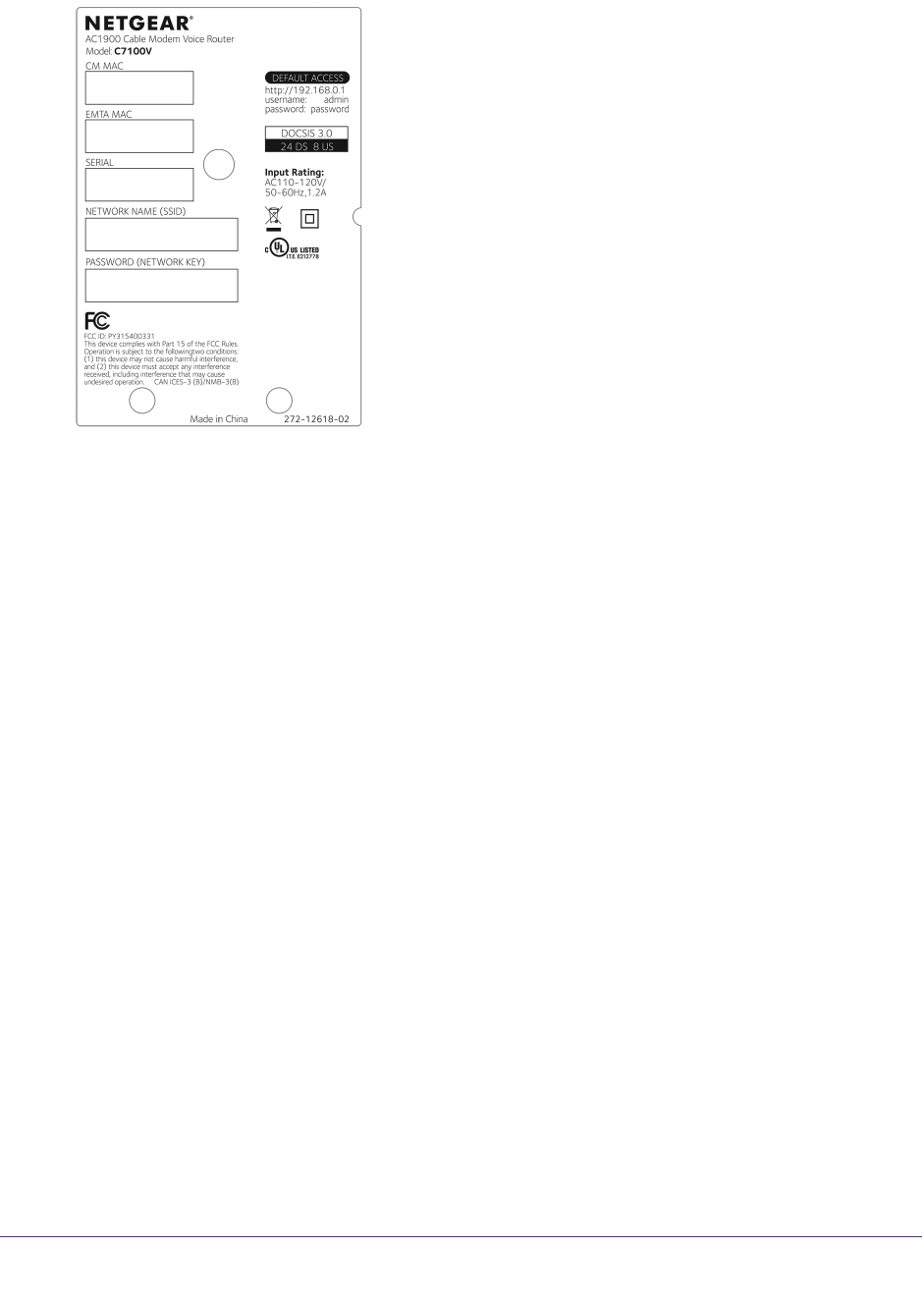 - AC1900 Cable Modem Voice Router