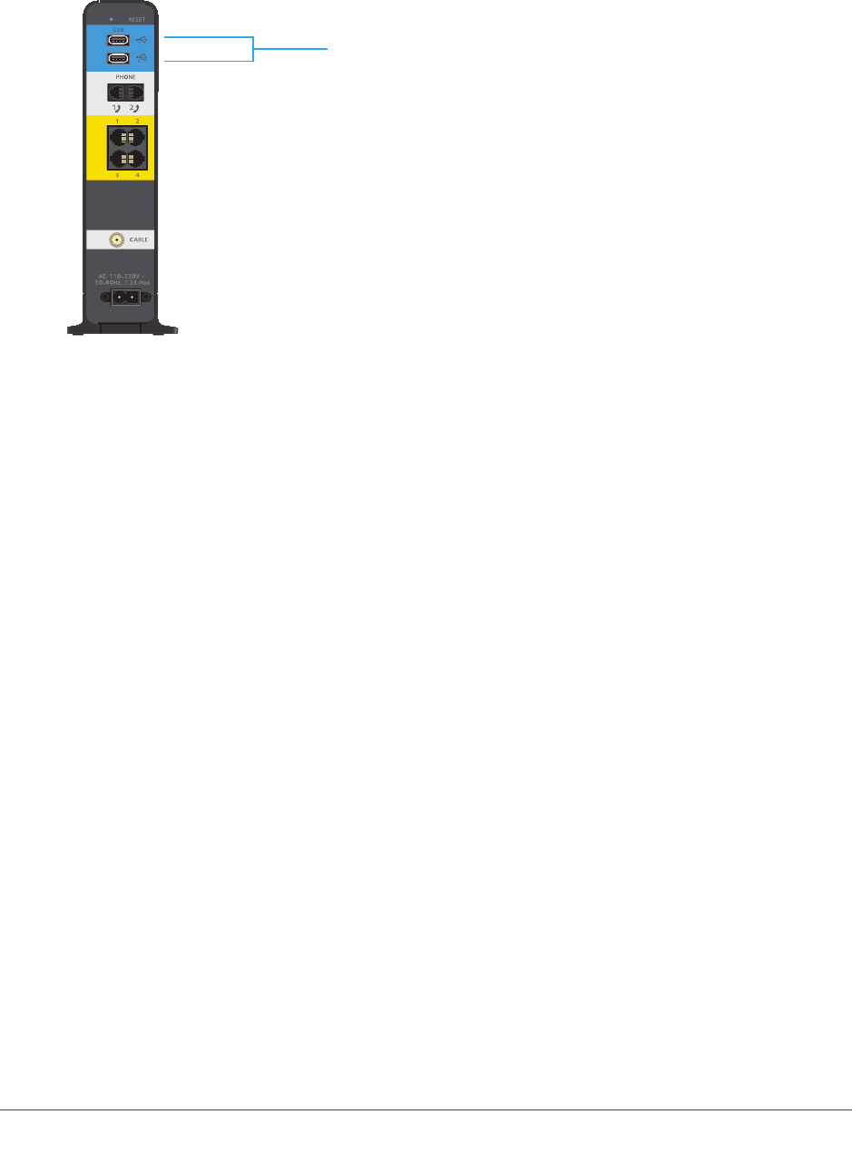 1. Insert your USB storage drive into a USB port on the rear panel of the modem router.