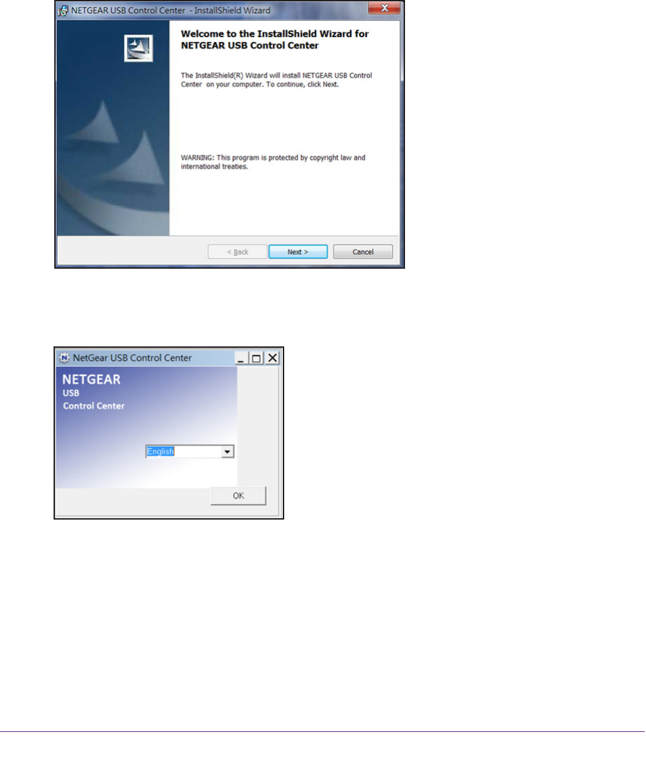 2. Follow the wizard instructions to install NETGEAR USB Control Center.