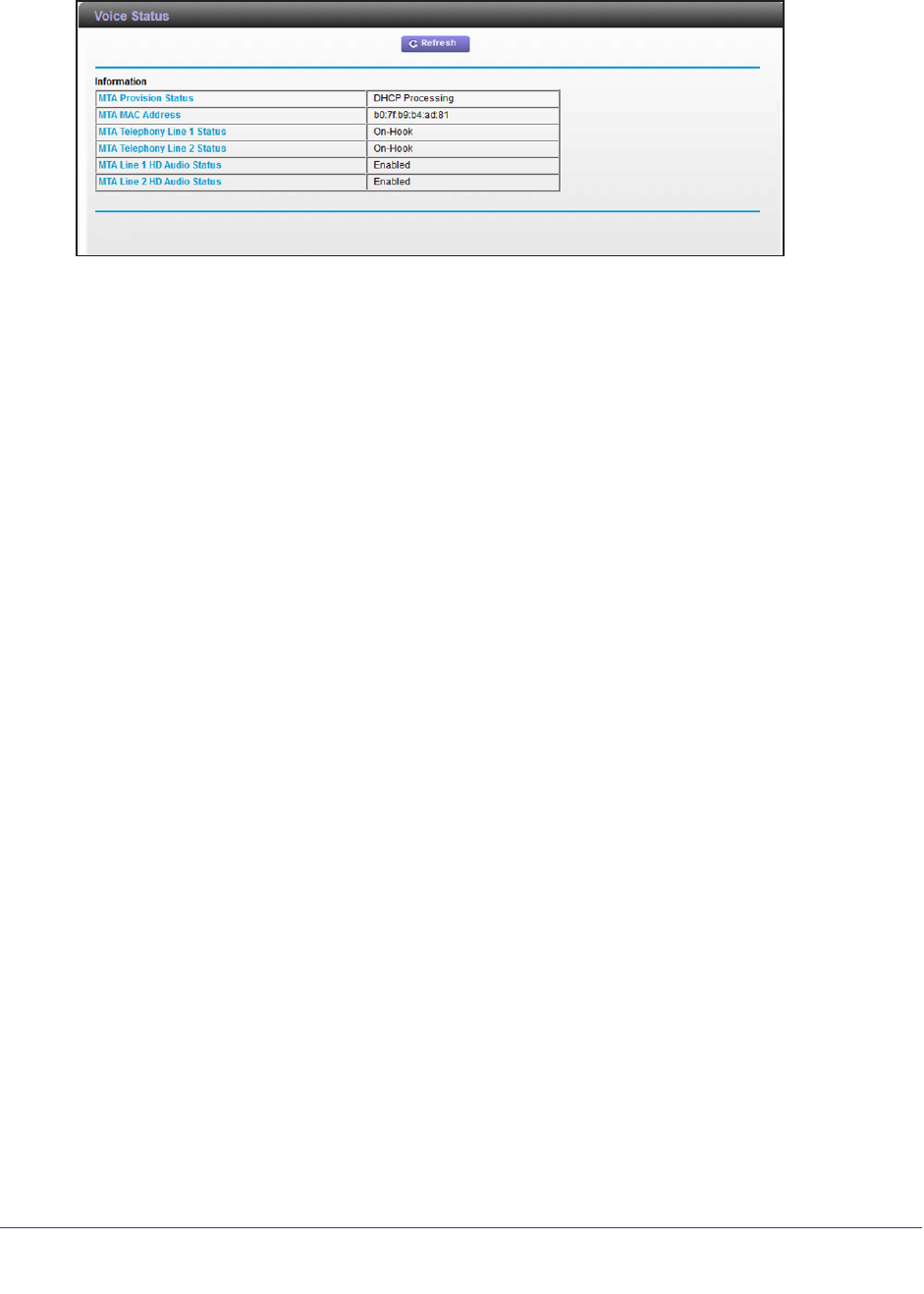 This list contains the per-call measurements for EMTA. It shows the codec used for the last