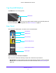 AC1900 Cable Modem Voice Router • USB ports. The USB ports lets you connect a USB hard drive, flash drive, or printer to the modem router. • Tel (voice) ports. Connect Voice over IP (VoIP) telephone lines. • Four Ethernet LAN ports. These ports support 1000 Mpbs, 100 Mpbs, and 10 Mpbs connections. Use the Ethernet LAN ports to connect local computers to the modem router’s Ethernet LAN. • Coaxial cable connector. Attach a coaxial cable to the cable service provider’s connection.