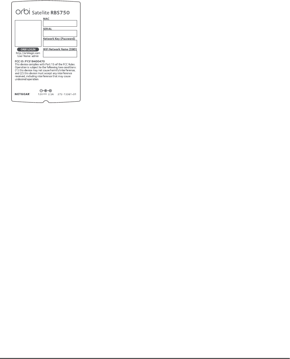 The satellite label shows satellite's serial number and MAC address. The satellite label