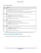 Orbi WiFi System Table 5. Factory default settings for the cable modem router (Continued) Feature WiFi Default Setting WiFi communication Enabled SSID name See cable modem router label Security WPA2-PSK (AES) Broadcast SSID Enabled Transmission speed Auto Country/region United States in the US RF channel 2.4GHz front and back haul: Auto 1 5 GHz front haul: Channel 48 5 GHz back haul: Channel 157 1 Maximum wireless signal rate derived from IEEE Standard 802.11 specifications.