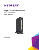 High Speed Cable Modem Support Thank you for purchasing this NETGEAR product. You can visit www.netgear.com/support to register your product, get help, access the latest downloads and user manuals, and join our community. We recommend that you use only official NETGEAR support resources. Conformity For the current EU Declaration of Conformity, visit http://kb.netgear.com/app/answers/detail/a_id/11621. Compliance For regulatory compliance information, visit http://www.netgear.com/about/regulatory.