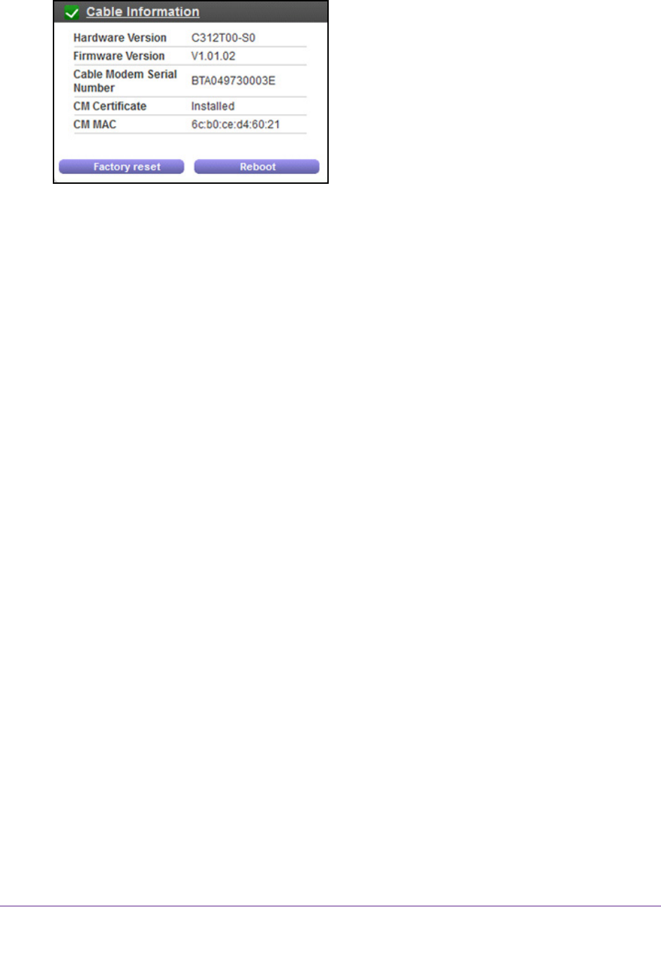 For information about using the Reboot button, see Reboot the Cable Modem on page 17.
