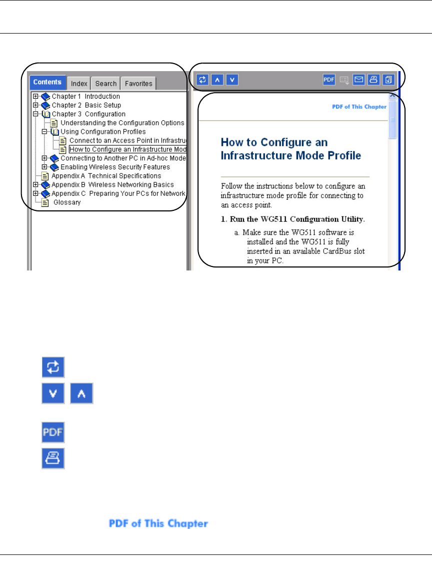 3. Right pane. Use the right pane to view the contents of the manual. Also, each page of the