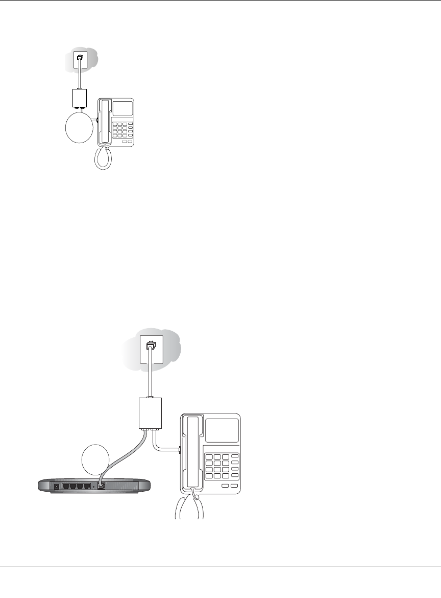 Figure 3-5: Connecting the DG834 ADSL router to an ADSL microfilter and phone
