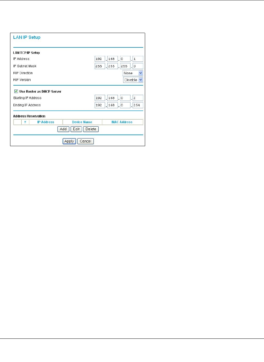 From the Main Menu, under Advanced, click the LAN IP Setup link to view the menu, shown