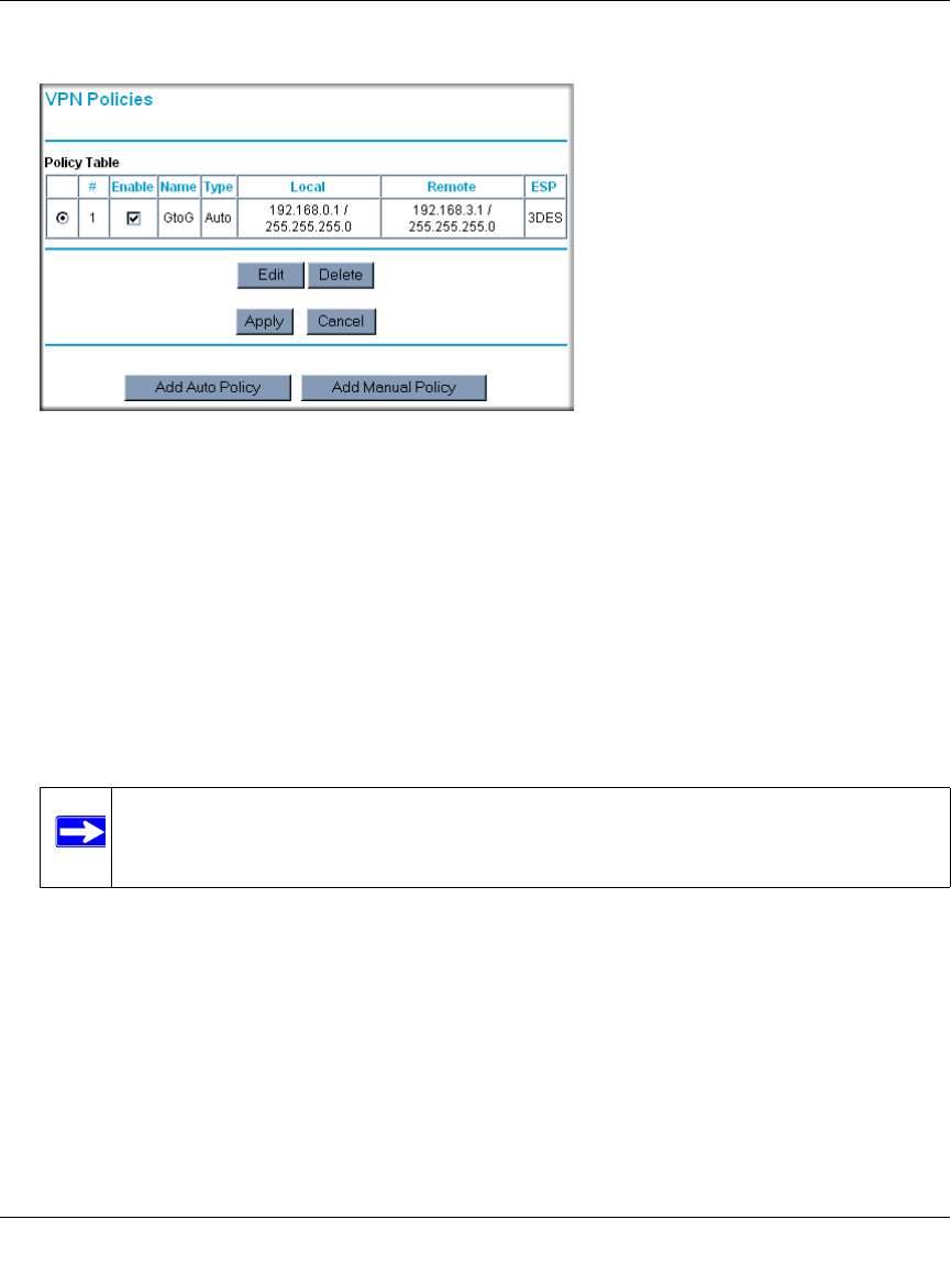 5. Click Apply. The Get VPN Policies web page is displayed.
