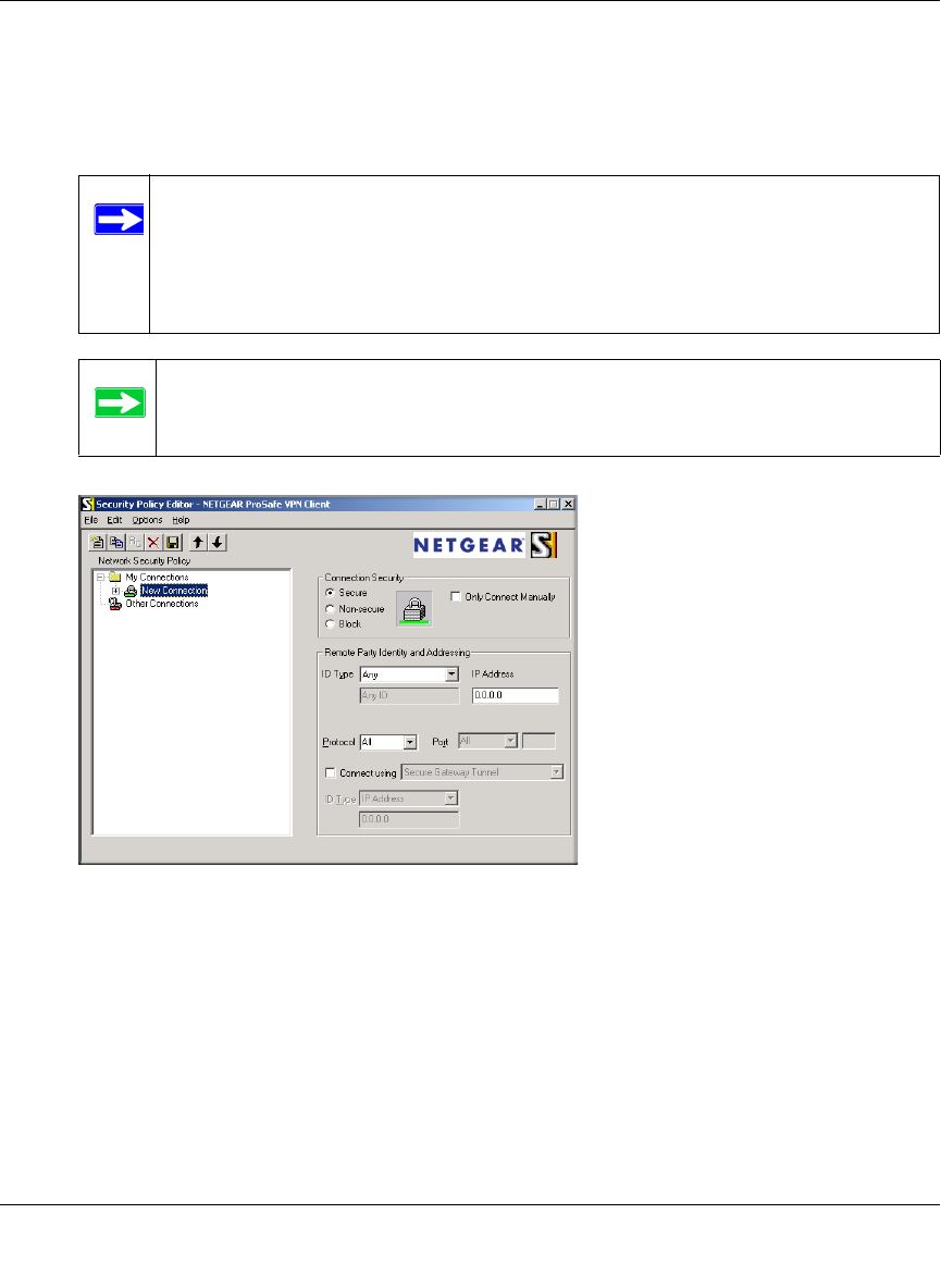 b. From the Edit menu of the Security Policy Editor, click Add, then Connection. A New