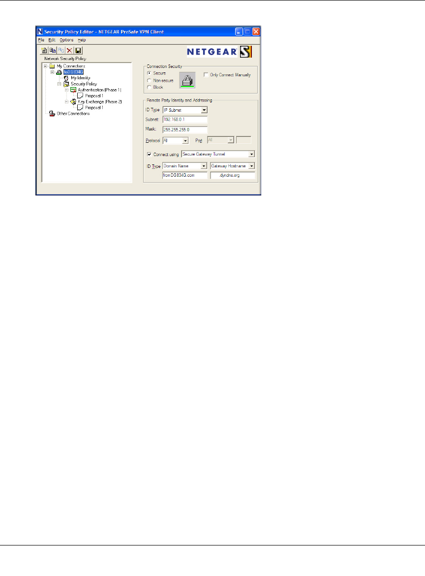 a. In the Network Security Policy list, expand the new connection by double clicking its