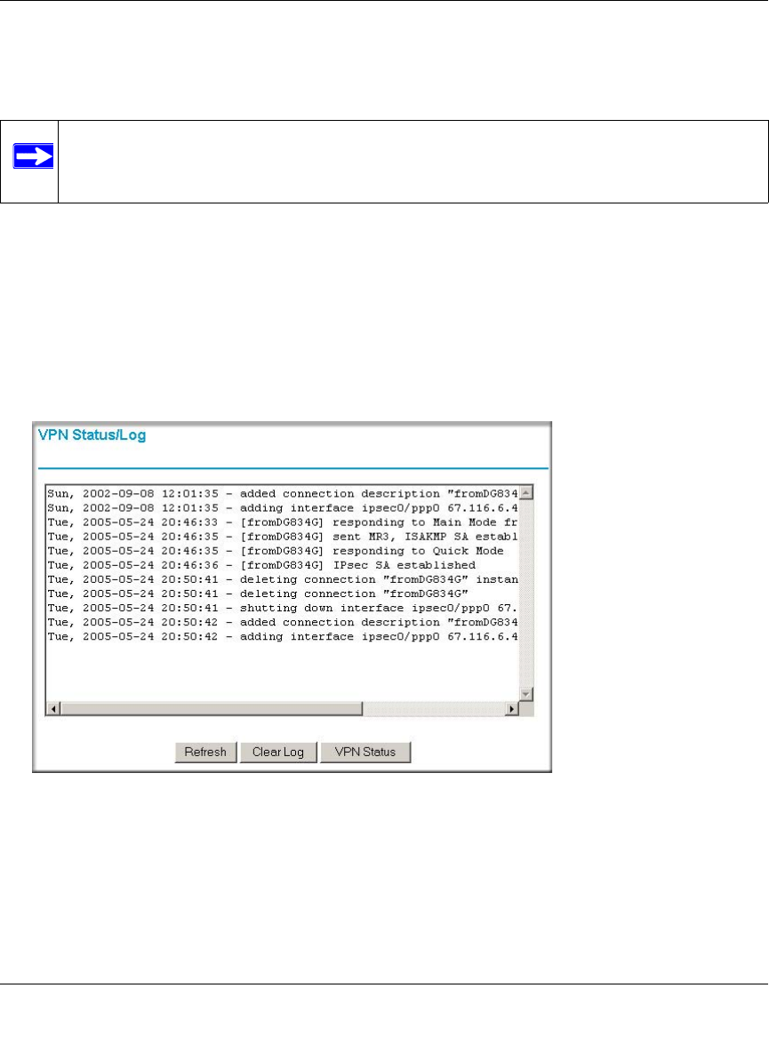 the VPN Status button. The VPN Status/Log screen for a connection is shown below: