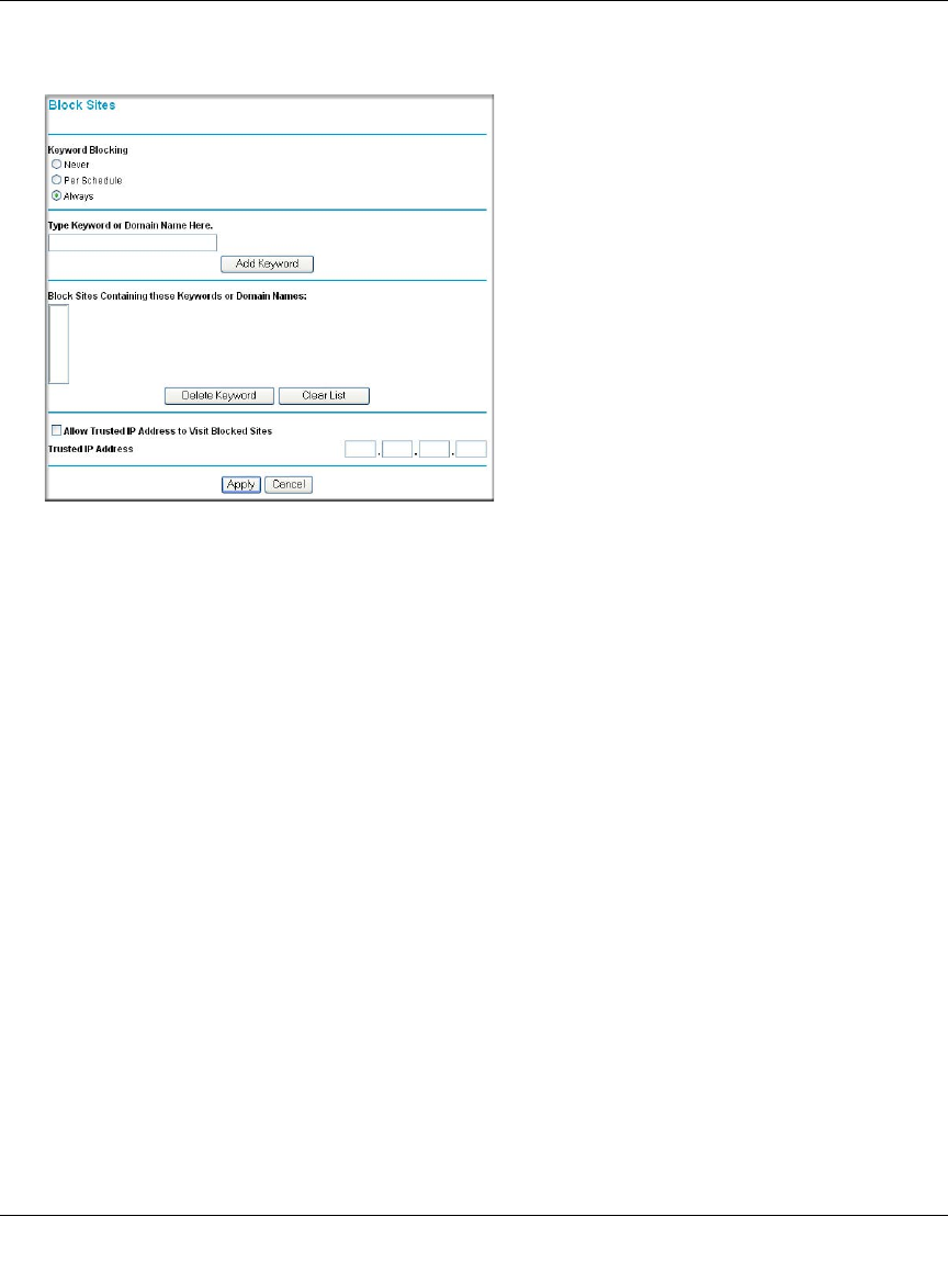 • Always—to turn on keyword blocking all of the time, independent of the Schedule page.