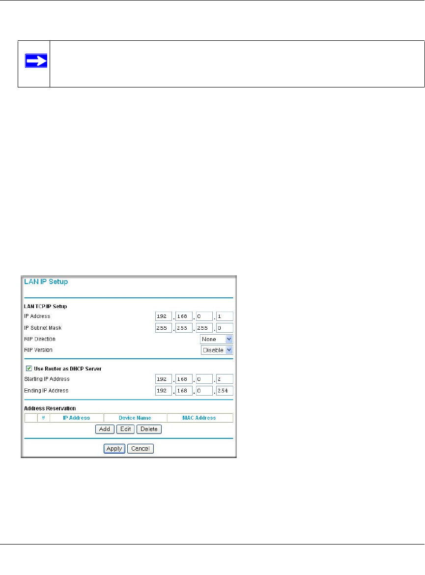 2. From the Main Menu, under Advanced, click the LAN IP Setup link to view the menu,