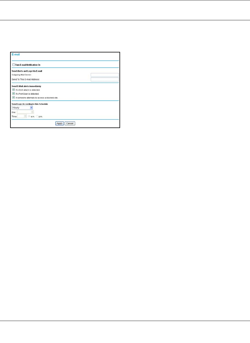 • Send alerts and logs via email. Enter the name or IP address of your ISP’s outgoing (SMTP)
