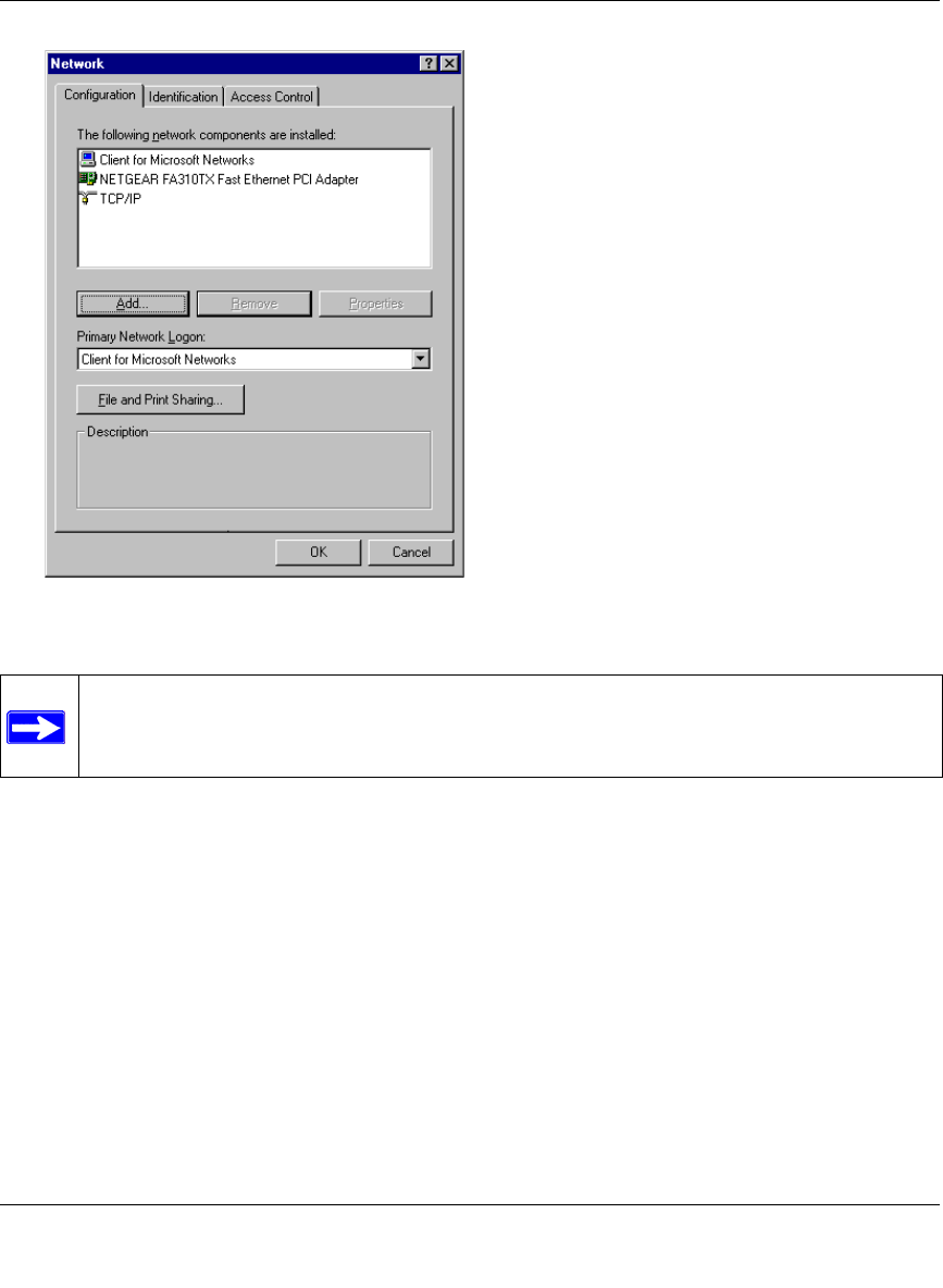 You must have an Ethernet adapter, the TCP/IP protocol, and Client for Microsoft Networks.