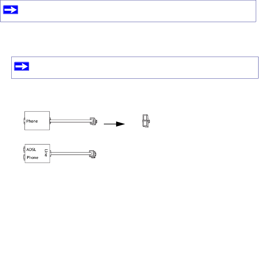 • Install an ADSL filter for every telephone that uses the same phone line as your wireless