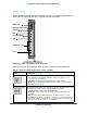 N300 Wireless ADSL2+ Modemrouter DGN2200Bv4 Vorderseite An der Vorderseite des Modemrouters befinden sich die in der Abbildung dargestellten Status-LEDs und Symbole. Die WiFi- und WPS-Symbole sind Tasten. WPS-Taste WiFi-Ein-/Ausschalter Internet DSL Netzwerk-WAN USB LAN-Ports (1–4) Power Abbildung 2. LEDs und Symbole auf der Vorderseite Die folgende Tabelle beschreibt die LEDs, Symbole und Tasten auf der Vorderseite. Tabelle 1.