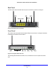 N300 Wireless ADSL2+ Modem Router DGN2200v3 Table 1. Front panel LEDs and buttons Icon Description Power • Solid green. Power is supplied to the modem router. • Solid red. POST (power-on self-test) failure or a device malfunction has occurred. • Off. Power is not supplied to the modem router. • Blinking. The LED blinks momentarily when the Restore Factory Settings button is pressed for 6 seconds (pressing it briefly resets the unit).