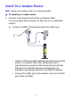 Before You Begin You can connect directly to a DSL line or to a cable/fiber modem. Note: If you are connecting to a DSL line, make sure that your DSL service is active before you install the modem router. You need the information listed here to install your DSL modem and connect to the Internet. Locate it and have it on hand before you start the installation procedure. • DSL user name and password. These are included in the welcome letter your DSL ISP sent you when you signed up for your service.