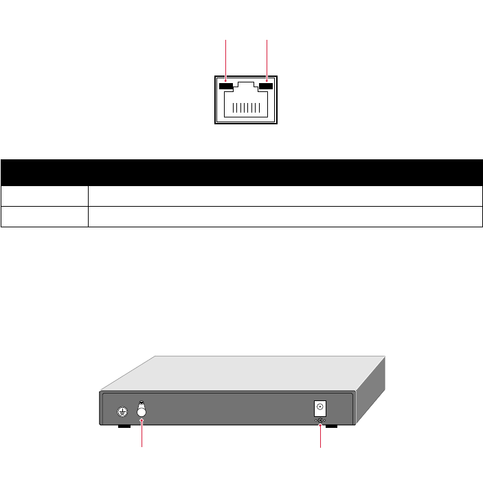 the top corners of each RJ-45 connector. The left indicator is the 100 Mbps