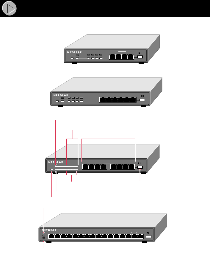 The DS100 Series hubs provide front-panel LEDs for monitoring individual