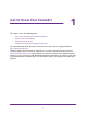 1. Get to Know Your Extender 1 This chapter covers the following topics: • Front Panel and Side Panel LEDs and Buttons • When to Use Your Extender • How the Extender Works • Support for the 802.11ac Networking Standard For more information about the topics covered in this manual, visit the support website at http://support.netgear.com. Firmware updates with new features and bug fixes are made available from time to time on downloadcenter.netgear.com.
