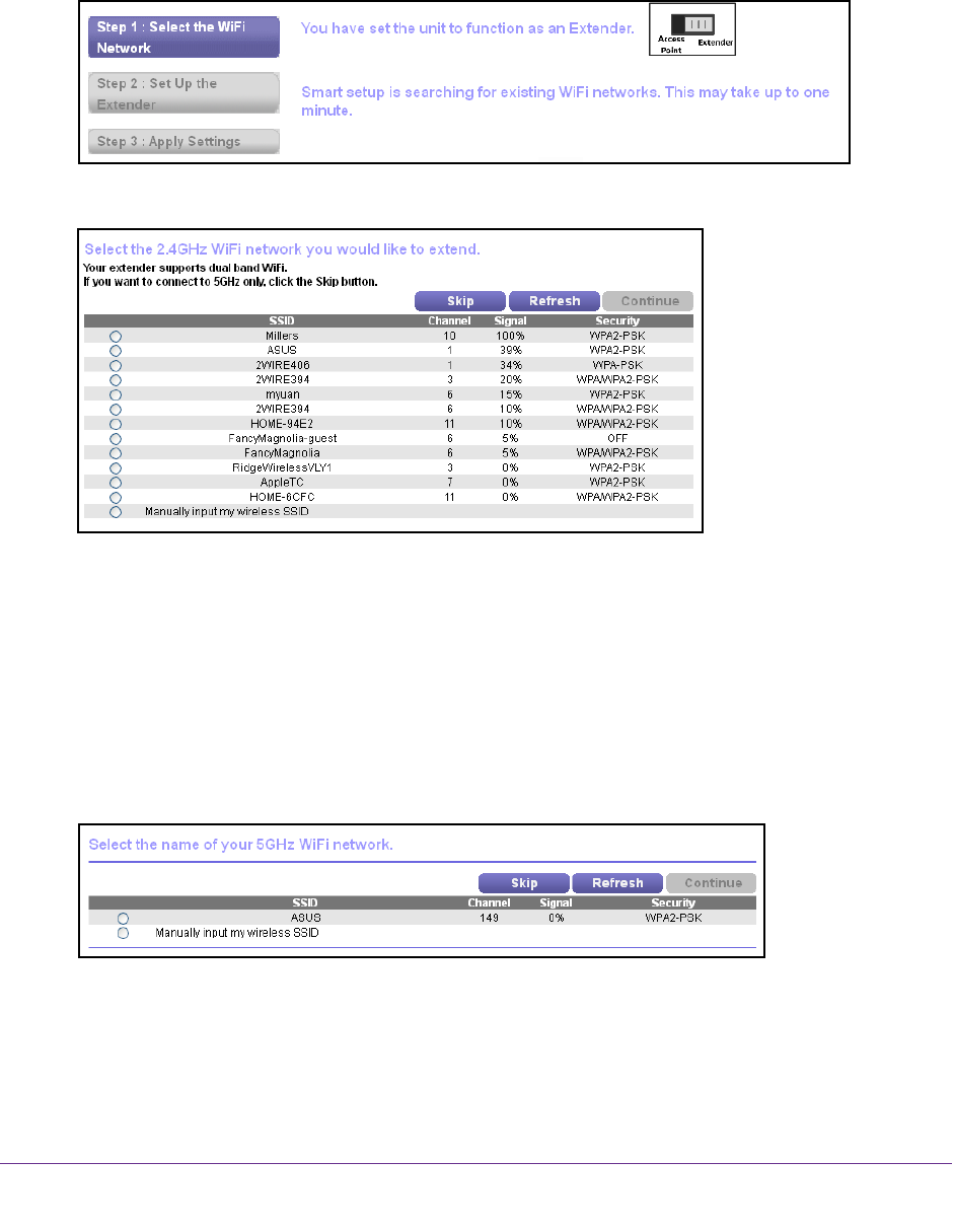 The extender finds the 2.4 GHz wireless networks in your area and displays a list.