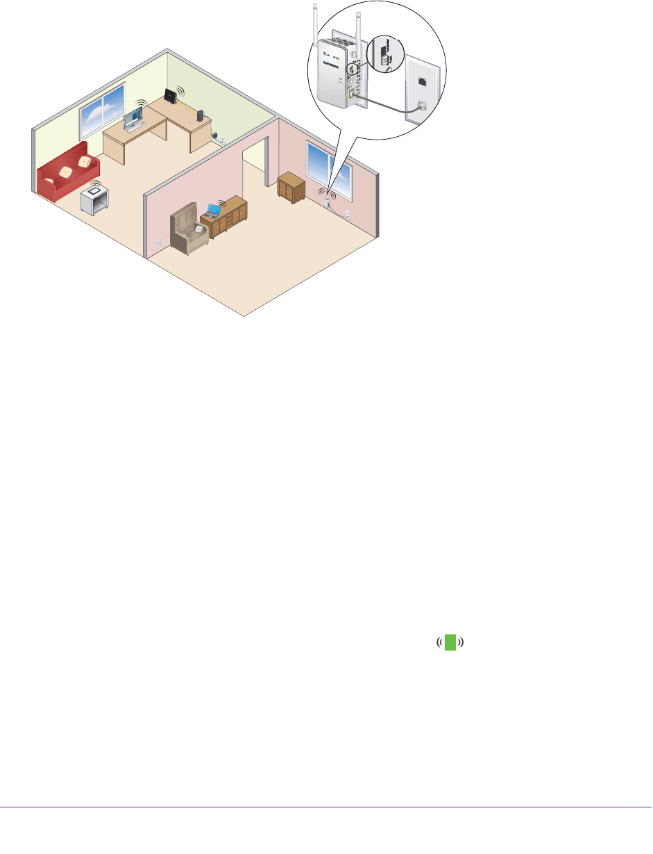 2. Plug the extender into an electrical outlet near a router Ethernet LAN port or a remote